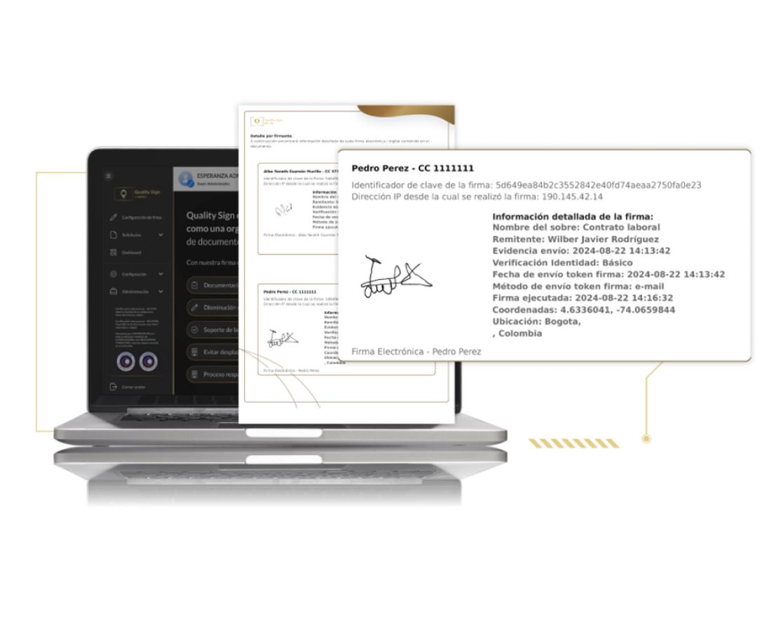Con esta solución las firmas están aseguradas por una Entidad de Certificación Digital – ECD, quien emite certificado digital para aquellas operaciones especializadas y sensibles que requieren una seguridad extra ante entidades de control, sean públicas o privadas.